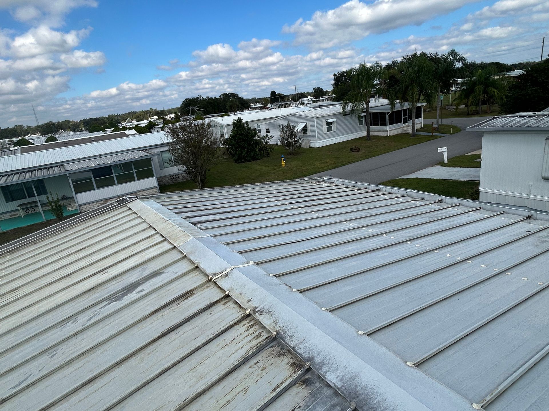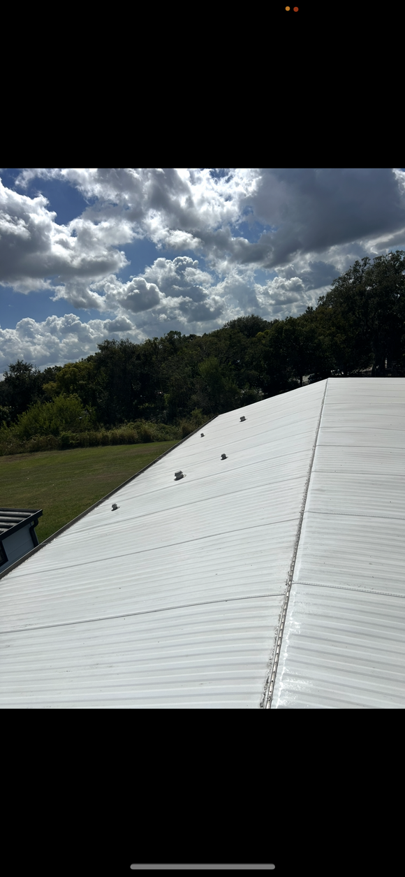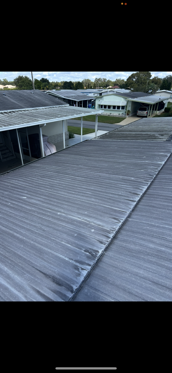At Tropical Coatings LLC, We Specialize in Soft Washings this is a low pressure cleaning that uses safe cleaning solutions to kill and remove algae,mold,mildew and bacteria growing on roofs like the picture listed here this is a project half done on a manufractured metal roof. Left is before right side is after.