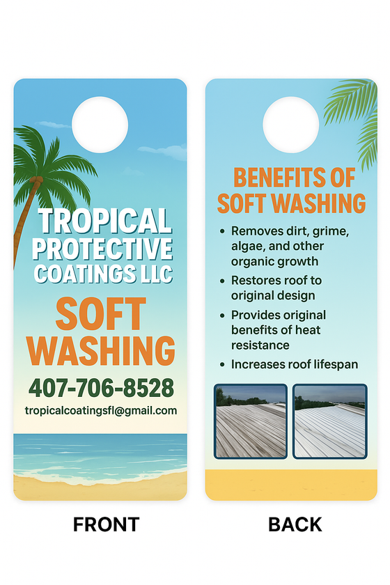 At tropical protective coatings LLC we are a family owned and operated business with over 3 generations of experience we recommend going soft washing because the other alternative is a high pressure washing that could potentially blast or damage the roof surface such as stripping shingles denting metal roofs and can also avoid roof warranties soft washing uses a gentle application so it cleans without harming shingles tile metal roofs and even coated surfaces.